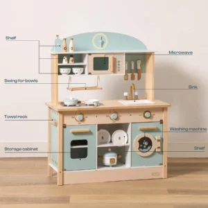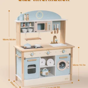 🚩 IDEAALNE SUURUS: Mõõtmetega 29,7 × 13,8 × 38,6 tolli sobib mänguköök suurepäraselt nii lastetuppa kui ka mängutuppa. Lisaks mänguasjale toimib see ka stiilse sisustuselemendina. 🌟